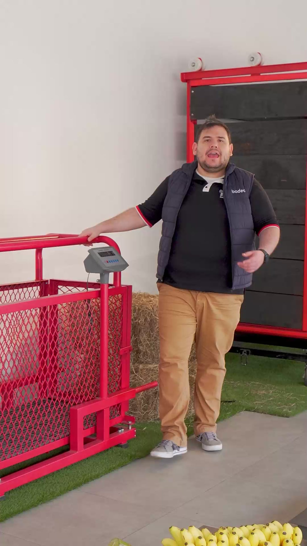 La Báscula Porcina electrónica marca Badecol, esta diseñada para que su uso sea de fácil manipulación y transporte; la bascula esta sobre un sistema de ruedas y manijas tipo carretilla. Fabricada en estructura tubular, con corral en malla metálica y piso de rejilla platico antideslizante.